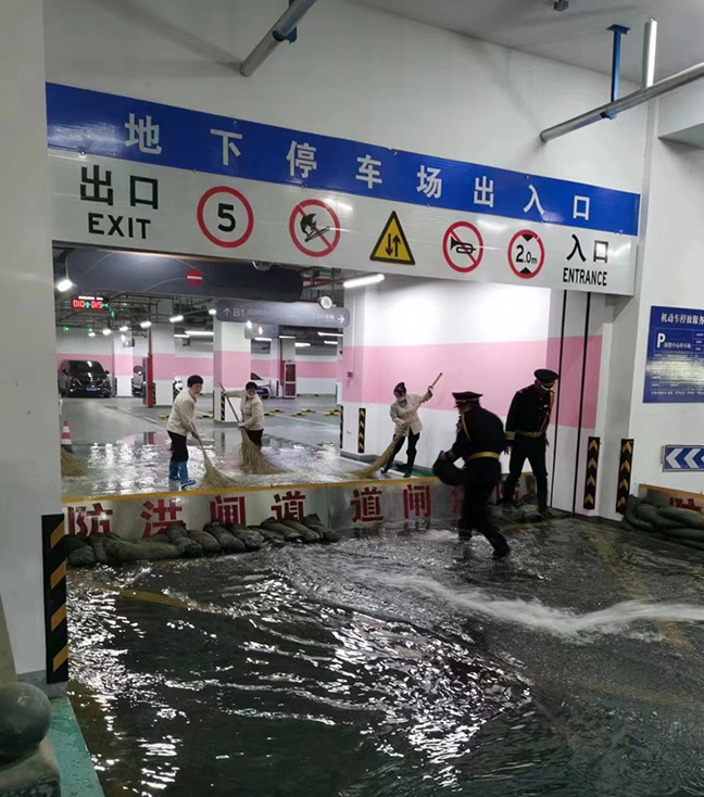 演練模擬持續(xù)暴雨導(dǎo)致地下車庫出現(xiàn)水情告急的情況。接到險情后,防汛應(yīng)急小組立即啟動應(yīng)急預(yù)案,及時疏散地下車庫內(nèi)的車輛,搬運、安裝防洪擋板,有序壘砌防洪沙袋,并使用防水電源線啟動潛水泵進行排水,及時清理積水區(qū)域。在搶險人員的共同努力下,險情迅速得到了控制,大家分工明確、配合默契,工作流程規(guī)范,安全保障措施到位,進一步檢驗了防汛搶險預(yù)案的實用性和可操作性,鍛煉了防汛搶險隊伍的組織能力、快速反應(yīng)能力,提高了實戰(zhàn)水平。