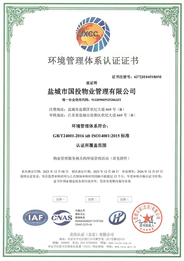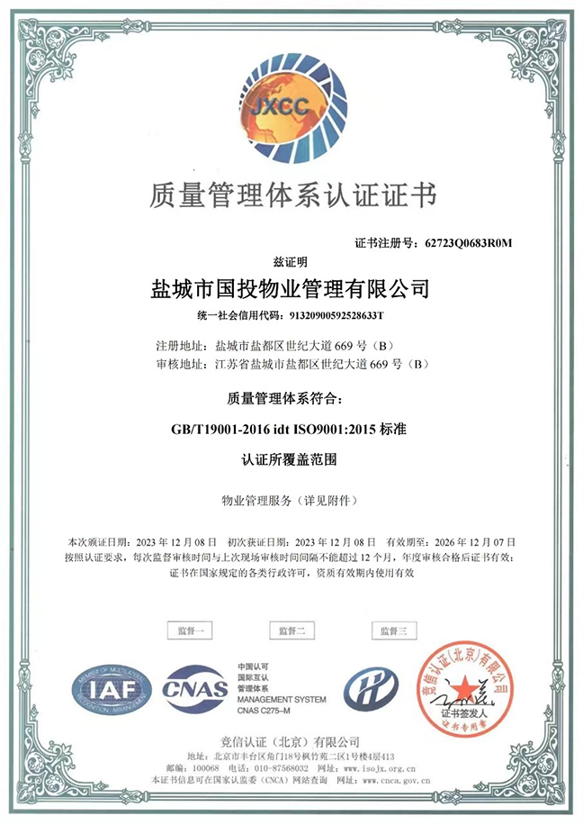 日前,鹽城國投物業(yè)公司順利取得ISO“三體系”(ISO9001質(zhì)量管理體系、ISO14001環(huán)境管理體系、ISO45001職業(yè)健康安全管理體系)認(rèn)證證書。這是公司在提升企業(yè)綜合實(shí)力過程中取得的新進(jìn)展,標(biāo)志著公司在精細(xì)化、制度化、規(guī)范化管理方面邁上新臺(tái)階。