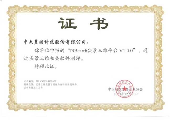 日前,中國(guó)地理信息產(chǎn)業(yè)協(xié)會(huì)發(fā)布了實(shí)景三維相關(guān)軟件測(cè)評(píng)結(jié)果,由中色藍(lán)圖公司自主研發(fā)的“NBearth實(shí)景三維平臺(tái)”順利通過(guò)實(shí)景三維相關(guān)軟件測(cè)評(píng)。