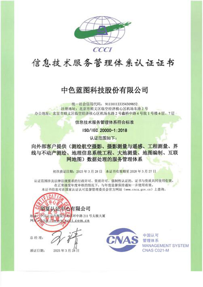 此次體系認(rèn)證的通過(guò),標(biāo)志著中色藍(lán)圖已經(jīng)建立了標(biāo)準(zhǔn)化、規(guī)范化、系統(tǒng)化的信息技術(shù)服務(wù)管理體系,將持續(xù)向外部客戶(hù)提供高質(zhì)量、高效率地理信息技術(shù)服務(wù)及軟件服務(wù),為集團(tuán)高質(zhì)量發(fā)展注入強(qiáng)勁動(dòng)能,為行業(yè)高標(biāo)準(zhǔn)建設(shè)做出更大貢獻(xiàn)!