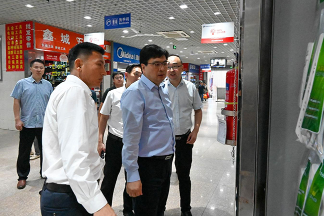在鹽城招商場,張林?,F(xiàn)場察看商場消控室、內(nèi)部滅火器配置、外部消防通道設置等,并詢問商場安全隱患整改情況和節(jié)假日期間值班值守安排。他要求,公司要加強安全防范,在重點部位加密滅火器布置數(shù)量,定期巡查外圍廣告牌、空調(diào)外機是否牢固,防范電線老化情況發(fā)生;要提高安全意識,定期組織商戶進行消防演練,形成“人人懂消防,個個會滅火”的安全氛圍。
