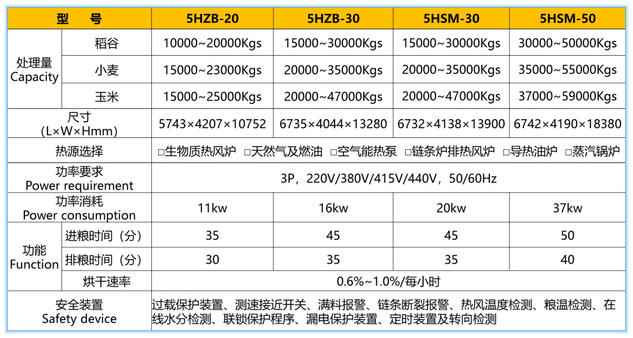 和糧低溫循環(huán)式烘干機(jī)技術(shù)參數(shù)表