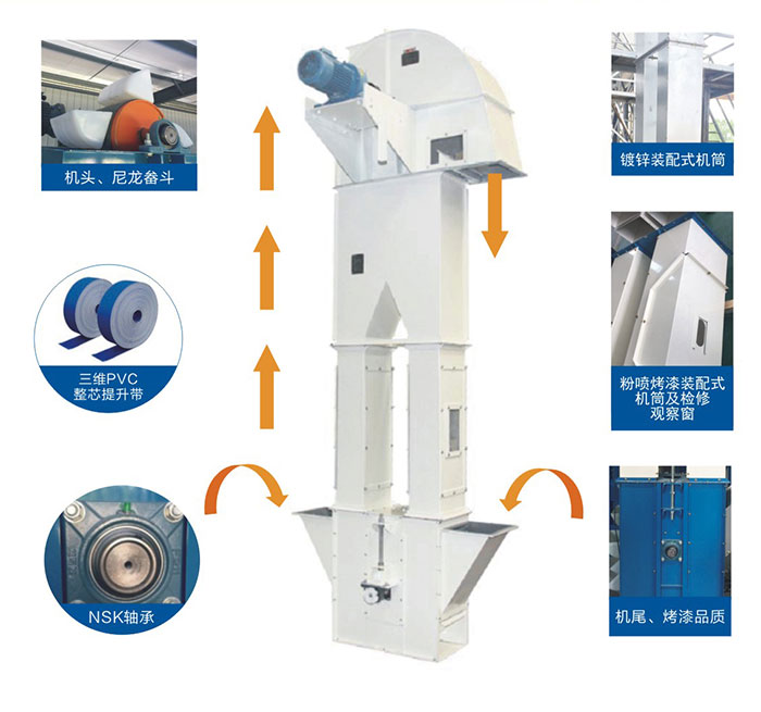 - 3、畚斗采用高強(qiáng)度、高抗沖尼龍或塑料畚斗;畚斗帶采用三維PVC整芯提升帶,耐磨、耐腐蝕、抗撕裂;