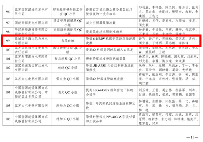 近日,鹽城國豐公司質(zhì)量管理小組的“降低6.45Mw機(jī)組變槳液壓油泄漏次數(shù)”與“液壓變?nèi)鞠到y(tǒng)Hydroll蓄能器系統(tǒng)升級(jí)”兩個(gè)課題,分別榮獲2025年度江蘇省電力行業(yè)QC小組發(fā)布一等成果與二等成果。