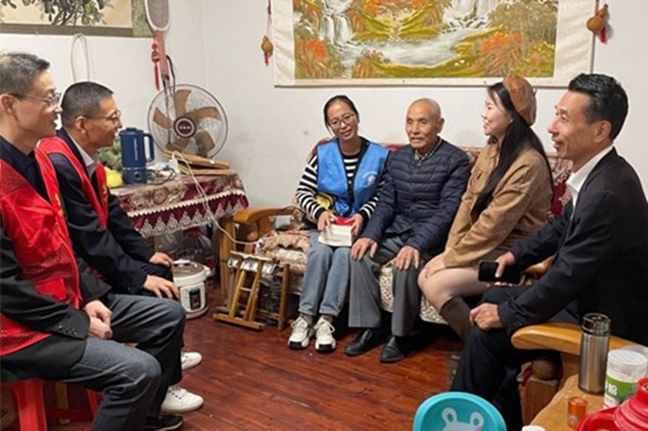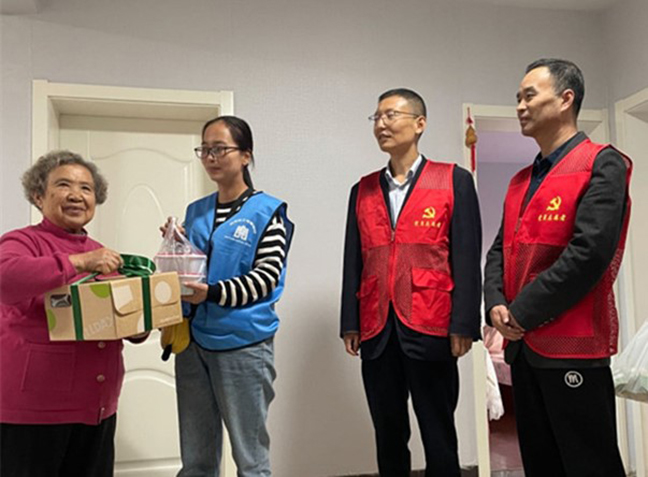 活動(dòng)中,黨員志愿者們來(lái)到桂苑社區(qū)華佳梅苑小區(qū),同社區(qū)工作人員一起為老黨員們送去精心準(zhǔn)備的食品和書籍,并與他們拉家常,傾聽他們的心聲,關(guān)切詢問(wèn)他們的日常起居、身體健康情況,并叮囑老人們?cè)趽Q季時(shí)節(jié)注意天氣變化,及時(shí)增添衣物,保重身體、安度晚年。一聲問(wèn)候,幾句細(xì)語(yǔ),洋溢著濃濃的情意,讓老黨員們深切感受到黨組織的關(guān)懷與溫暖。