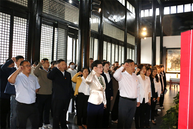 本次活動(dòng)以“踐行‘三個(gè)務(wù)必’ 庚續(xù)紅色血脈”為主題?;顒?dòng)中,4個(gè)基層黨組織的黨員干部職工首先來到新四軍重建軍部舊址(泰山廟),從老照片、文獻(xiàn)、歷史實(shí)物中深入了解當(dāng)年新四軍在艱苦環(huán)境中浴血奮戰(zhàn)、英勇抗敵的光輝歷程,感受革命先烈們忠貞不渝的愛國主義情懷。在紀(jì)念館大廳,全體黨員面向黨旗重溫入黨誓詞,表達(dá)不忘初心、牢記使命的堅(jiān)定信念。